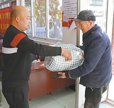 上午10時,走進碼頭村黨群服務中心,正碰上73歲老人杜金亭騎著電動三輪車,載著老伴來領新棉被。為保障困難群眾冬季取暖,涿州市民政局為全市殘疾人、“六類人群”免費發(fā)放過冬棉被。杜金亭的老伴肢體殘疾,是低保戶?!靶路颗渖闲旅薇唬@個冬天不愁了!”取上新棉被,杜金亭邀請記者去新家看一看。