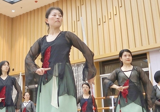 一些年輕人在夜校學(xué)習(xí)淮劇團舞劍課程。上海市群眾藝術(shù)館供圖