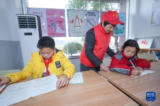 12月20日,秀山小學學生在“民生小鋪”志愿者的陪護下做作業(yè)。