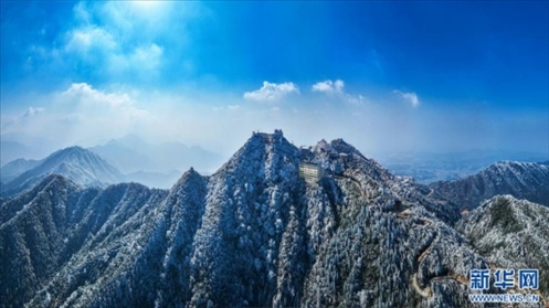 近日,受寒潮影響,江西樂安大華山出現(xiàn)漫山遍野的霧凇景觀,遇上云海翻騰,宛若仙境。