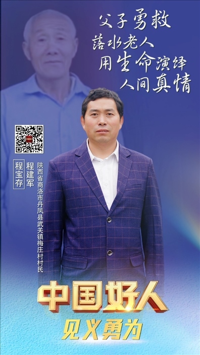 程寶存,男,1953年8月生;程建軍,男,1978年6月生。二人為父子關(guān)系,系陜西省商洛市丹鳳縣武關(guān)鎮(zhèn)梅莊村村民。2021年9月,父子兩人協(xié)力救助落水老人,父親程寶存不幸被水沖走獻(xiàn)出了寶貴生命。程建軍說:“這件事誰遇到都會去做的,我相信我爸也不會后悔自己的選擇?!?/p>