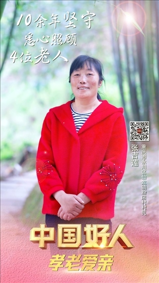 張吉蓮,女,1973年12月生,重慶市永川區(qū)仙龍鎮(zhèn)粉店村村民。1996年,張吉蓮與仙龍鎮(zhèn)張家村的凡時德結(jié)婚。在相繼為父親和奶奶養(yǎng)老送終后,張吉蓮將3位年邁體弱的叔叔接到自己家里照顧。在她的悉心照料下,幾位老人衣食富足,生活幸福。鄰里鄉(xiāng)親受其影響,逐漸形成了孝老愛親、守望相助的文明鄉(xiāng)風(fēng)。