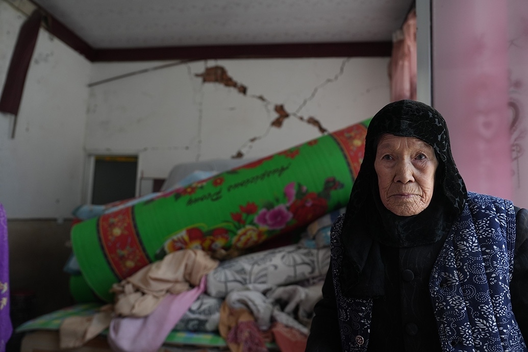 12月23日當(dāng)天,馬國忠和叔叔伯伯兩家都在家門前搭起剛領(lǐng)的帳篷。叔叔馬進明家受損嚴(yán)重,兩堵磚墻的銜接處完全開裂,像條拉鏈被猛地拽下;天花板掉了大半,木頭架構(gòu)的屋頂赫然露在豁口里。所幸,他和家人平時在縣城租房住。