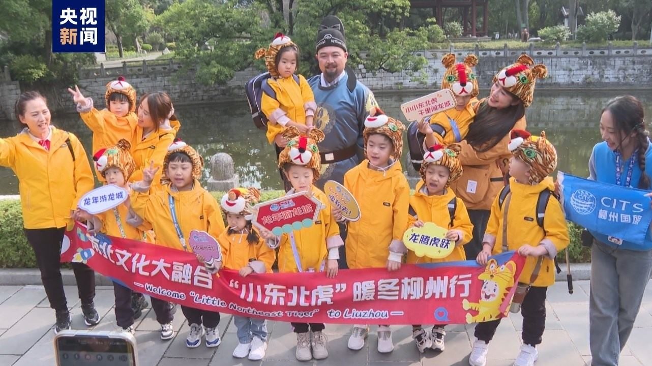 小朋友們統(tǒng)一穿著黃色外套,頭戴可愛的老虎帽,就連推著的行李箱也是“虎紋”的,萌感十足。和“小砂糖橘”一樣,“小東北虎”們最大的不過6歲,最小的才3歲,一下飛機(jī),“小東北虎”就收到了暖心禮物。10日,“小東北虎”來到柳侯祠,訪一代宗師柳宗元,感受柳州的千年歷史文化,在馬鞍山公園俯瞰了整座柳州城,在螺螄粉文化展館打卡柳州螺螄粉,夜游百里柳江,玩得不亦樂乎。