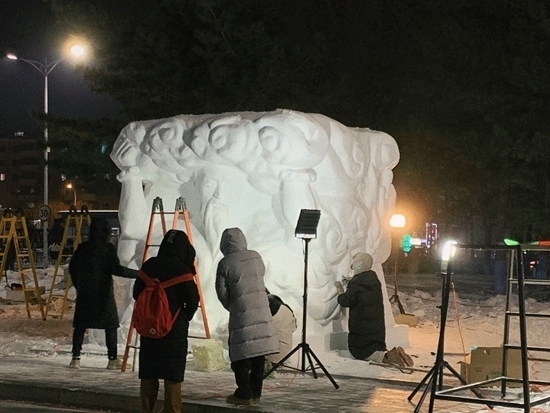能夠與冰雪“親密接觸”,中國(guó)美術(shù)學(xué)院的熊竣苓要感謝剛剛在哈爾濱落幕的第十六屆國(guó)際大學(xué)生雪雕大賽。他所在的團(tuán)隊(duì)由包括他在內(nèi)的4位南方同學(xué)組成,他們創(chuàng)作的雪雕作品《盤古開天》獲得了一等獎(jiǎng)。這段比賽經(jīng)歷讓第一次去哈爾濱的熊竣苓非常難忘,“最近哈爾濱很火,雖然我是去參加比賽的,但能去哈爾濱一趟,也非常激動(dòng)了。我記得我們從機(jī)場(chǎng)到酒店的路上,透過(guò)車窗看到了霧凇,一下子就讓我這個(gè)南方人感受到了北方冬天的美。”他回憶,做雪雕時(shí),他和另外3位同學(xué)都既緊張又興奮,“我們都是第一次觸摸雪做雕塑,此前在學(xué)校練習(xí)時(shí)是用泥巴或石膏,跟雪是完全不同的質(zhì)感,所以過(guò)程中我們都小心翼翼,非常緊張;同時(shí),我們都是第一次見到這么多雪,太激動(dòng)了。”