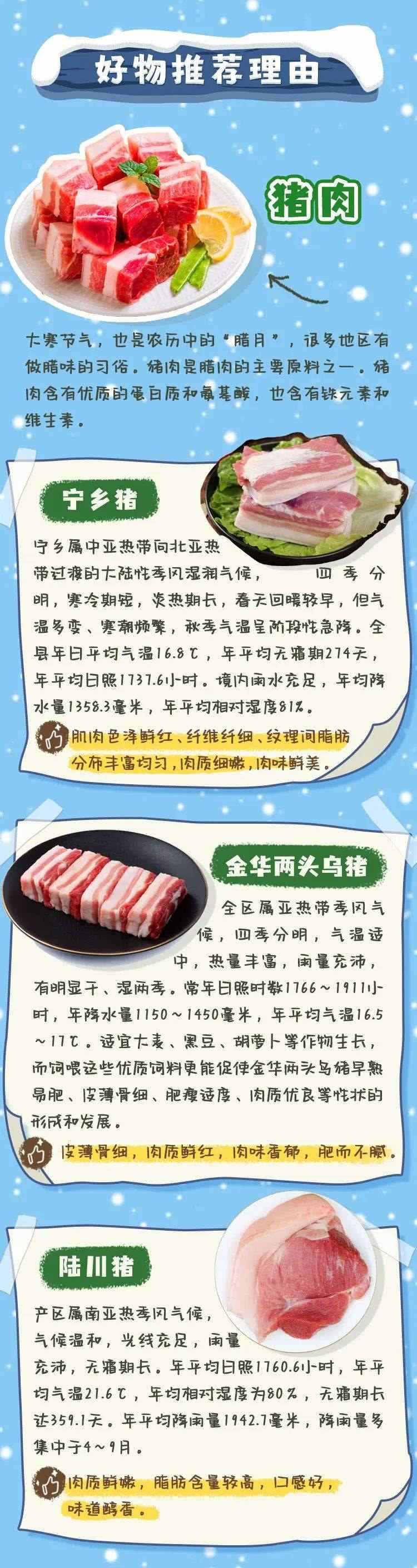 大寒節(jié)氣除了吃糯米飯外,還有一個習(xí)俗就是做臘肉、吃臘肉?!岸D風(fēng)腌,蓄以御冬”,這個時節(jié),最適合風(fēng)干制作臘味。豬肉,是臘肉的主要原材料之一。我國的養(yǎng)豬史,最早可以追溯到新石器時代,目前豬肉產(chǎn)區(qū)可以說是遍布全國,不同地區(qū)的豬肉也有不同的特色和風(fēng)味。