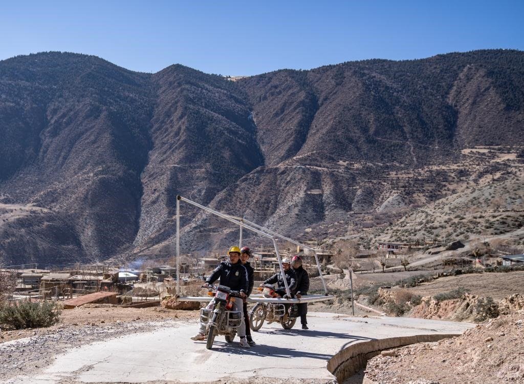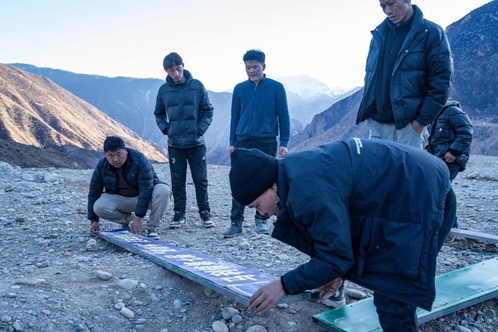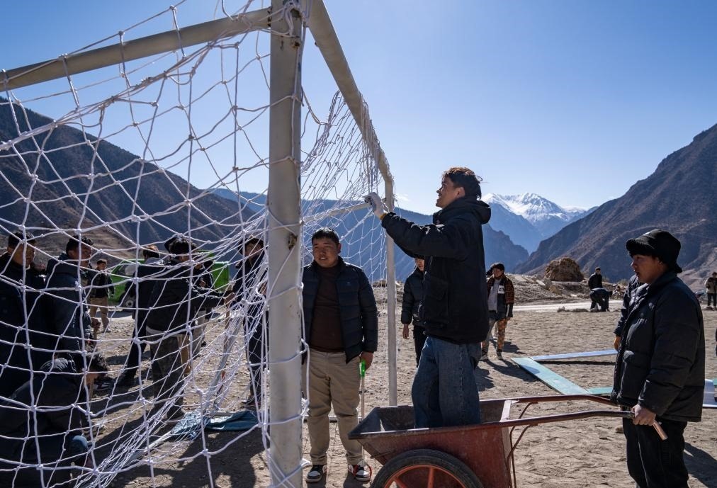 修好啦,嘎瑪群美帶著摩托車(chē)隊(duì)馱著球門(mén)興沖沖回村