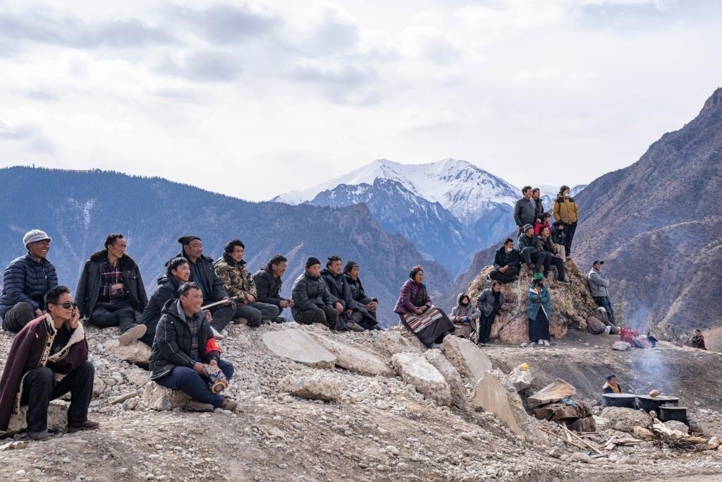 村民們席地而坐觀(guān)看比賽(1月21日攝)