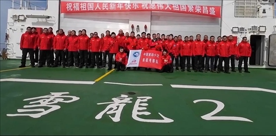 ·“雪龍2”號(hào)隊(duì)員在地球最南端送上新春祝福。
