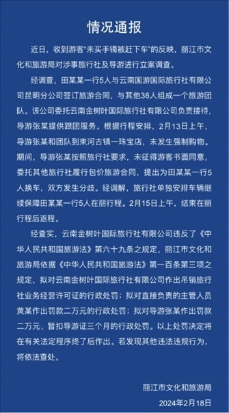 ·麗江通報(bào)“一家人未買5萬手鐲被趕下車”:未發(fā)生強(qiáng)制購物。