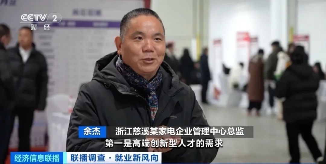 浙江慈溪某家電企業(yè)管理中心總監(jiān) 余杰:第一是高端創(chuàng)新型人才的需求,第二是一線產業(yè)工人的需求。接下來幾年,我們企業(yè)對智能化、數(shù)字化的人才有大量需求,市場很欠缺。