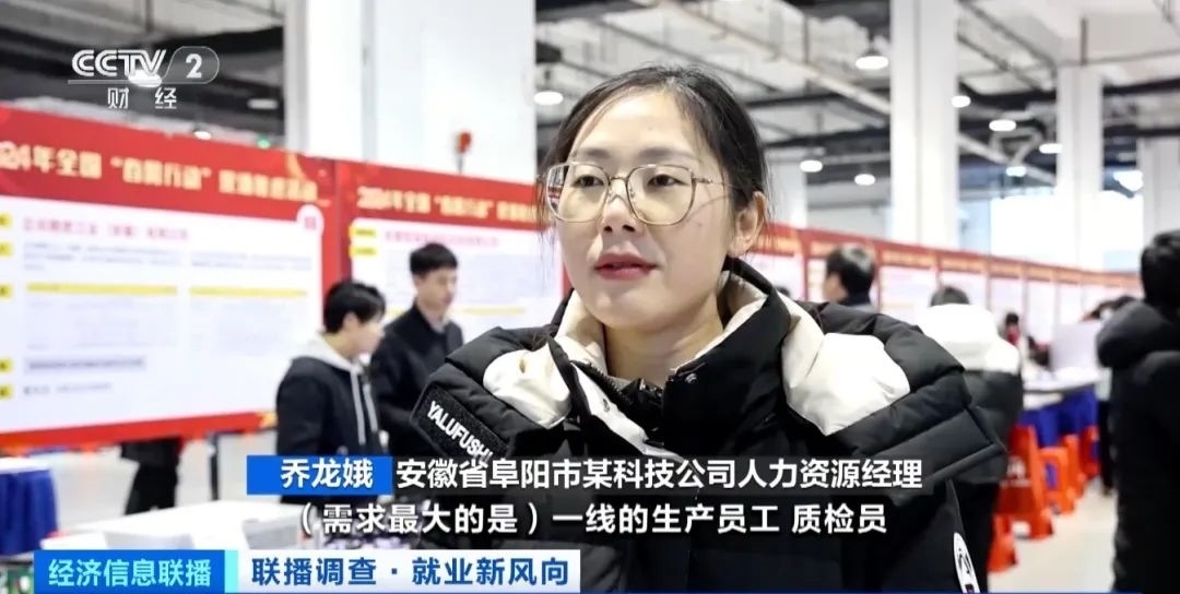安徽省阜陽市某科技公司人力資源經理 喬龍娥:需求最大的是一線的生產員工、質檢員、工程師?;鶎訂T工一般到手工資是5000元起。