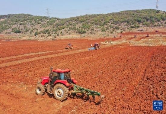 3月7日,在云南省開遠市中和營鎮(zhèn),農(nóng)機手駕駛拖拉機整地。