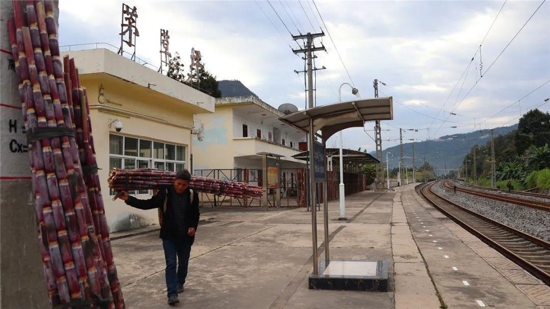3月2日一大早,小小的茅草坪站就坐滿了背著農(nóng)產(chǎn)品前來乘坐“慢火車”的群眾。蔗農(nóng)李進(jìn)賢準(zhǔn)備從茅草坪站乘坐6081次慢火車給在松河的客戶送甘蔗。