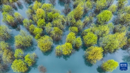 新疆巴州,隨著天氣轉(zhuǎn)暖,冰雪消融的博斯騰湖迎來大批候鳥。