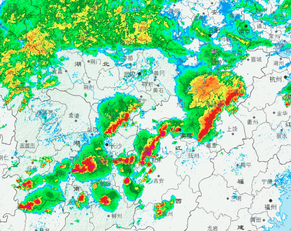 今天,南昌等地對流云團一波接一波。圖:中央氣象臺