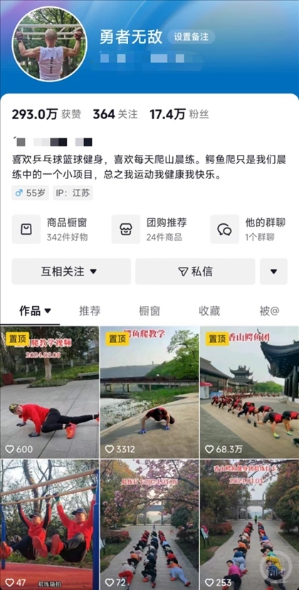 上游新聞?dòng)浾呖吹剑{魚(yú)健身團(tuán)最火的一個(gè)視頻獲得了上百萬(wàn)的點(diǎn)贊量和上千萬(wàn)瀏覽量,浙江、湖南等地也出現(xiàn)了類(lèi)似健身團(tuán)體。
