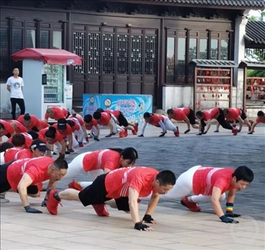 健身團(tuán)成員在做“鱷魚(yú)爬”。 ? 受訪者供圖