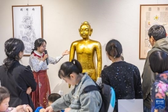 4月6日,醫(yī)生志愿者在“百草創(chuàng)藝”中醫(yī)藥藝術(shù)作品展現(xiàn)場為觀眾講解中醫(yī)藥文化知識。