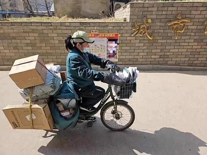 4月8日,沈陽(yáng)一名快遞員在小區(qū)內(nèi)送件。新華社記者 于也童 攝