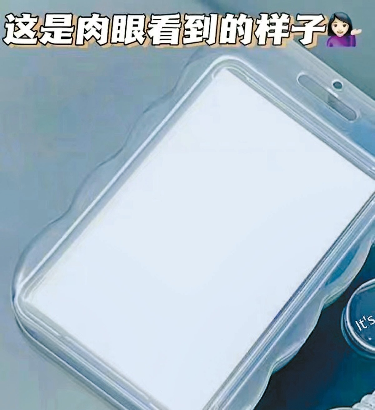 商家還表示,卡包中可以放上真實的飯卡等,遮蓋住手機的背面,手機正面的屏幕在外人看來,是純粹的白色,必須戴上眼鏡才能看到屏幕上的內(nèi)容。