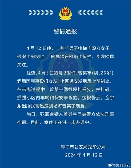 ·男子酒后毆打女友被保安制止,??诰剑悍缸锵右扇艘驯恍叹小?/p>