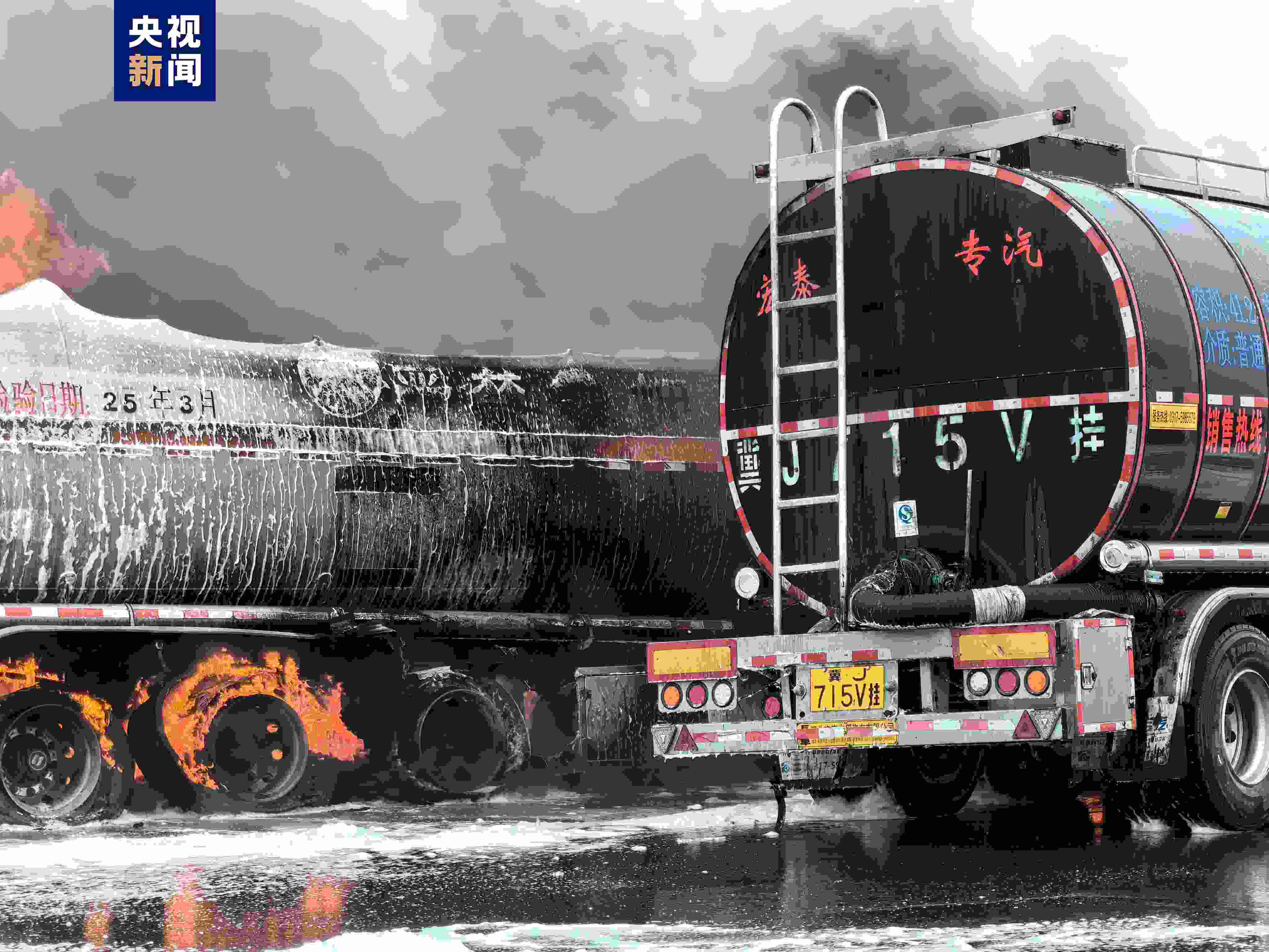 天津濱海新區(qū)兩輛罐車發(fā)生交通事故后起火 1人受傷送醫(yī)