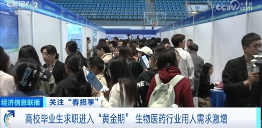 在江蘇南京的一場(chǎng)校園招聘會(huì)上,記者看到,生物醫(yī)藥行業(yè)的招聘企業(yè)占據(jù)了整場(chǎng)招聘會(huì)接近一半的展位。蔣素梅是一家醫(yī)藥研發(fā)企業(yè)的人力資源負(fù)責(zé)人,剛到招聘現(xiàn)場(chǎng),就有不少學(xué)生前來(lái)投遞簡(jiǎn)歷。