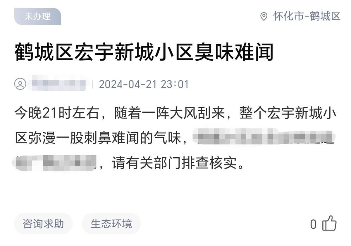 4月21日晚,湖南懷化市鶴城區(qū)多位居民反映聞到不明異味,有人稱像煤氣泄漏,味道刺鼻,有人稱臭味難聞。4月23日,懷化市生態(tài)環(huán)境局工作人員告訴極目新聞記者,已接到較多投訴,正在調(diào)查中。