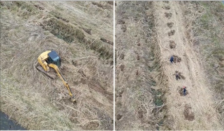 督察組暗查發(fā)現(xiàn),益陽(yáng)市南洞庭湖省級(jí)自然保護(hù)區(qū)歐美黑楊已清退區(qū)域正在挖坑種樹(shù)。(督察組供圖)