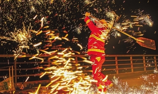 村干部組隊“打鐵花” 綻放古鎮(zhèn)之夜