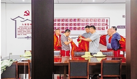 “當(dāng)時我們想請打鐵花的工匠來清湖表演,可一問要一萬多元一場,我就想著還不如把這門技藝學(xué)過來,這樣逢年過節(jié)都能表演?!眲⑿×值南敕ǖ玫搅似渌甯刹康闹С?,大家說干就干,7名村干部組建了一支“打鐵花小隊”,通過在外鄉(xiāng)賢的牽線搭橋,從河南洛陽請來專業(yè)師傅教授技藝。