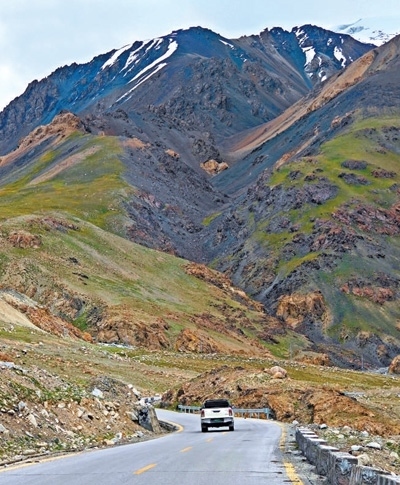 喀喇昆侖公路穿越高原山地地區(qū),大量路段區(qū)域海拔高、地質條件復雜,修建難度大。圖為車輛在喀喇昆侖公路高原山地路段行駛。瓦卡斯·阿赫邁德攝