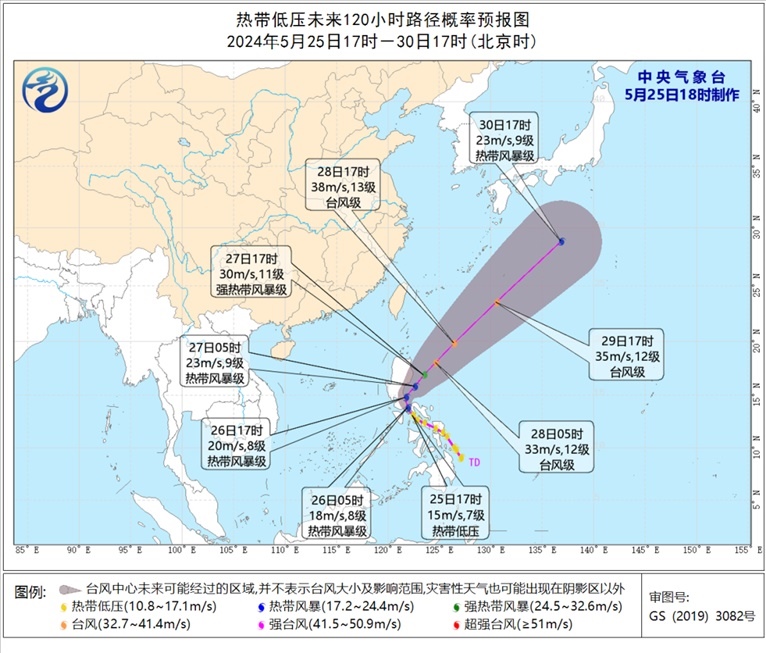 再看看菲律賓附近熱帶低壓,其中心今天下午5點鐘位于菲律賓馬尼拉東南方大約225公里的菲律賓群島中部,預(yù)計將于未來12小時內(nèi)加強為今年第1號臺風(fēng),明后天將在菲律賓呂宋島東部海面逐漸轉(zhuǎn)向東北方向移動。