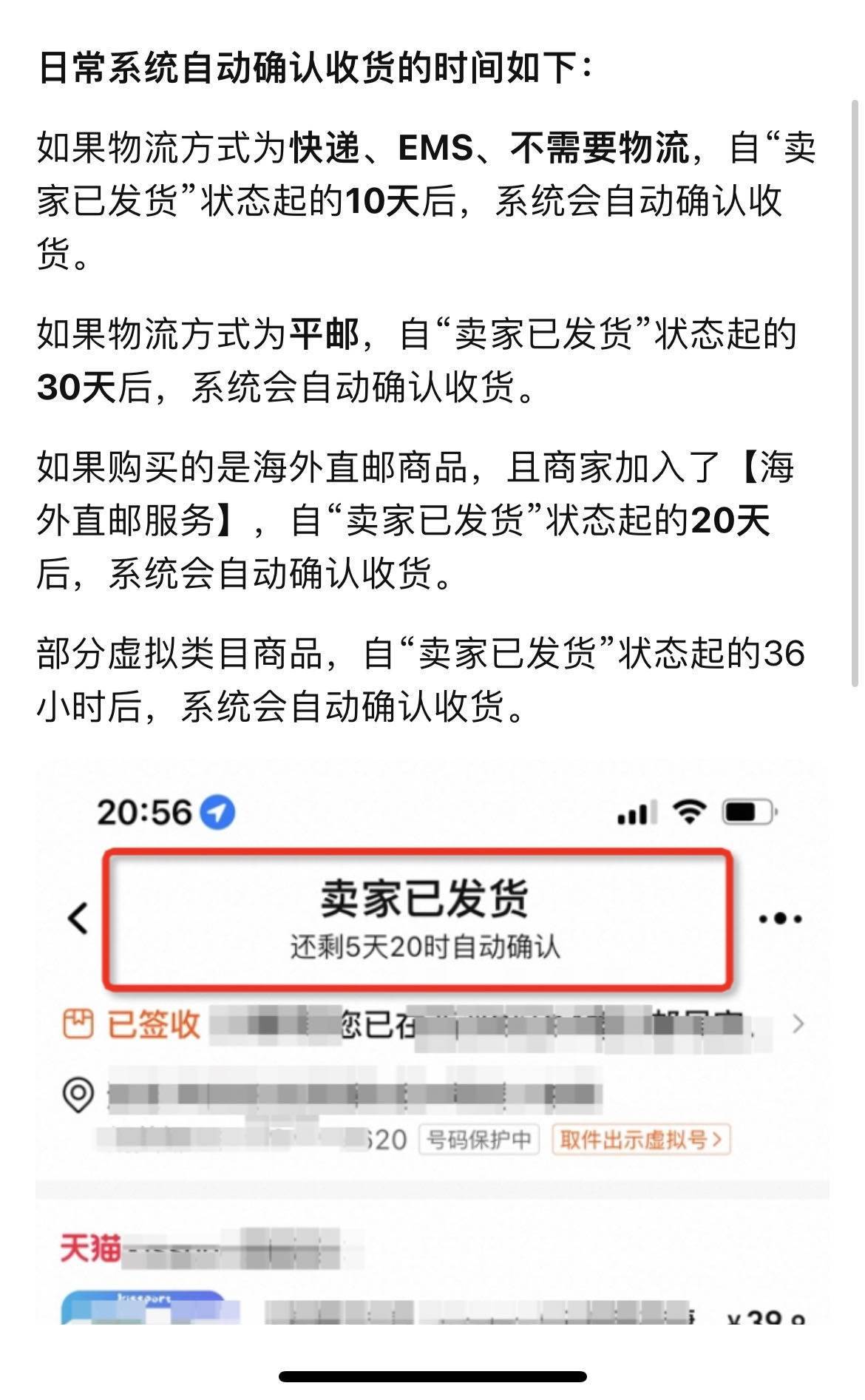 浙江溫州的林先生告訴記者,去年11月他在淘寶海淘羽絨服,賣(mài)家稱(chēng)已經(jīng)發(fā)貨后他一直沒(méi)有在意物流信息,直到發(fā)現(xiàn)商品已經(jīng)自動(dòng)收貨,他才意識(shí)到,賣(mài)家利用了淘寶默認(rèn)快遞發(fā)貨后10天、海外直郵商品發(fā)貨后20天,系統(tǒng)自動(dòng)確認(rèn)收貨的規(guī)則漏洞。