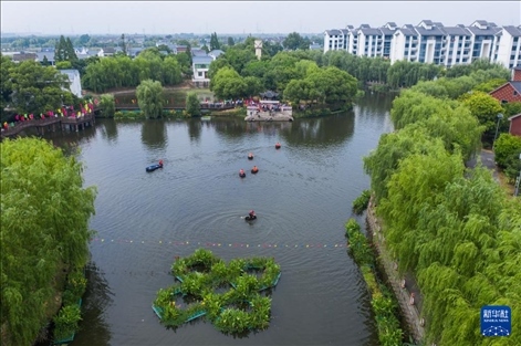 當日,浙江省湖州市吳興區(qū)東林鎮(zhèn)舉辦“慶端午 劃菱桶”水鄉(xiāng)端午趣味民俗活動,來自東林鎮(zhèn)各村的村民們在泉益村參加了水鄉(xiāng)劃菱桶比賽、荷塘釣小龍蝦、做艾草花束、包粽子等端午趣味民俗活動,在初夏時節(jié)呈現(xiàn)江南水鄉(xiāng)特有的迎端午氣氛。