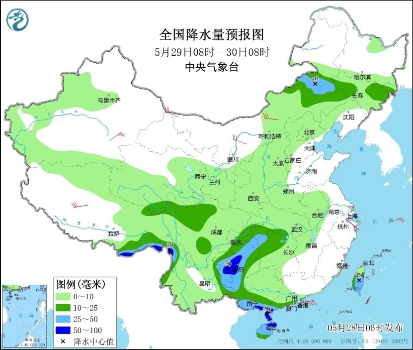 人民網(wǎng)北京5月28日電 (溫璐、高清揚)據(jù)中央氣象臺網(wǎng)站消息,昨日,較強降水主要出現(xiàn)在江南中東部、華南及西南地區(qū)東南部等地,其中,安徽銅陵,浙江金華和衢州,福建南平,廣東江門和茂名,廣西玉林、崇左、百色和南寧,云南文山等局地出現(xiàn)大暴雨。預(yù)計今明兩天,南方地區(qū)強降水范圍收縮,暴雨預(yù)警今晨已降級為藍色,但華南南部、西南地區(qū)東部等地部分地區(qū)仍雨勢較強,公眾需關(guān)注持續(xù)降雨對交通出行的不利影響,注意出行安全。