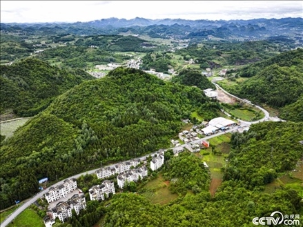貴州省黔西市綠化白族彝族鄉(xiāng)馬坎村村莊,黑瓦白墻,蜿蜒的“四好農(nóng)村路”村口經(jīng)過,周圍覆蓋著綠色的山野,美麗如畫。