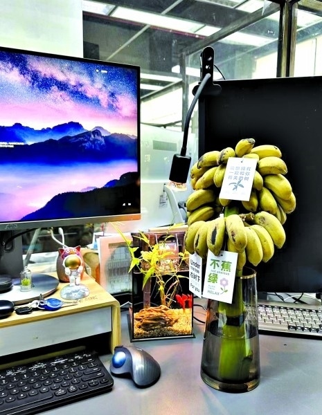 “現在大家工作都挺累的,職場里稍微有一點令人感到驚喜和有趣的話題,大家好像就會變得很開心?!眳芹谑且幻来畈┲?,自從他開始在辦公桌上養(yǎng)香蕉之后,單位的很多同事都會好奇地走過來瞧瞧。
