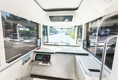 鄂爾多斯市康巴什區(qū)的智能網(wǎng)聯(lián)觀光巴士?jī)?nèi)部。