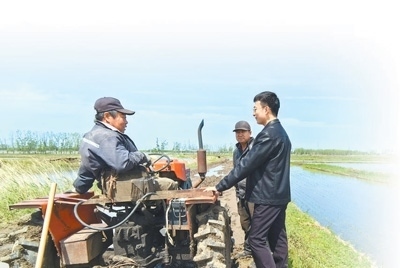 吉林省松原市寧江區(qū)毛都站鎮(zhèn)的田野上,一排排水稻秧苗青青,腳蹬膠靴、戴著眼鏡的支農(nóng)工作者汪宏宇蹲下身子,向村民講解水稻種植的技術(shù)細節(jié),仔細檢查著田里秧苗情況?!斑@都是前幾天剛栽種的水稻秧苗,長得挺硬實。”汪宏宇說。