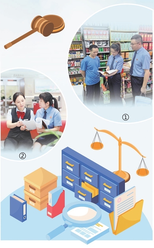 圖①:郯城縣檢察院檢察官在向當(dāng)事人核實了解情況。顧嘉豪攝 圖②:蘭山區(qū)檢察院檢察官在向銀行工作人員取證。李春晨攝