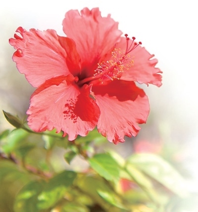 朱槿,又稱大紅花,錦葵科木槿屬植物,常綠灌木或小喬木。喜溫暖、濕潤(rùn),四季有花,其花大色艷,粗生快長(zhǎng),既可地栽、盆栽,又可為綠籬。