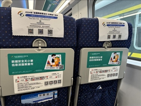 據(jù)介紹,專列的8個主題車廂分別以“中國網(wǎng)絡(luò)法治三十年”“網(wǎng)絡(luò)安全”“數(shù)據(jù)安全”“未成年人網(wǎng)絡(luò)保護(hù)”“數(shù)據(jù)出境之旅”“反網(wǎng)暴凈網(wǎng)行動”“個人信息守護(hù)”以及“網(wǎng)絡(luò)空間命運(yùn)共同體”命名,通過鏡框海報(bào)、玻璃貼、小桌板貼、行李架彩貼、頭枕片、車內(nèi)LED信息屏等形式多樣的載體,全面展示網(wǎng)絡(luò)法治30年成就、網(wǎng)絡(luò)空間命運(yùn)共同體主張。讓乘客們在享受舒適旅途的同時,也能輕松學(xué)習(xí)到實(shí)用的法律信息。