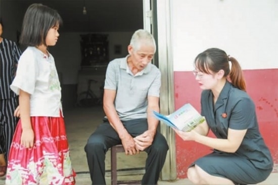 圖③:法官在庭后開展普法宣傳。