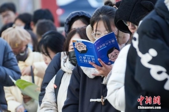 2023年11月26日,山西省太原市,考生在考場外復(fù)習(xí)。當(dāng)日,中央機(jī)關(guān)及其直屬機(jī)構(gòu)2024年度考試錄用公務(wù)員公共科目筆試舉行。中新社記者 武俊杰 攝