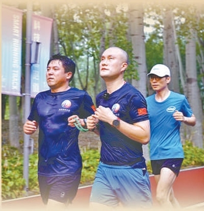 10月27日,“2024滴滴海淀馬拉松”在北京中關(guān)村開跑。志愿者與鄭高峰兩人,一人負責(zé)引路,一人負責(zé)調(diào)整跑步節(jié)奏,一同跑向終點。