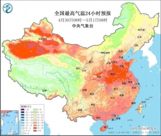 昨日,河北南部等地最高氣溫超過35℃。預計今天,華北、黃淮一帶氣溫仍較高,包括鄭州在內(nèi)的部分地區(qū)今天最高氣溫可達35℃。五一假期臨近,氣象專家提醒,假日前期全國大部地區(qū)降雨偏弱,氣溫偏高,公眾在外出游玩時注意防暑防曬。假日后期南方地區(qū)雨水增多,外出時需注意避雨和防御強對流天氣。