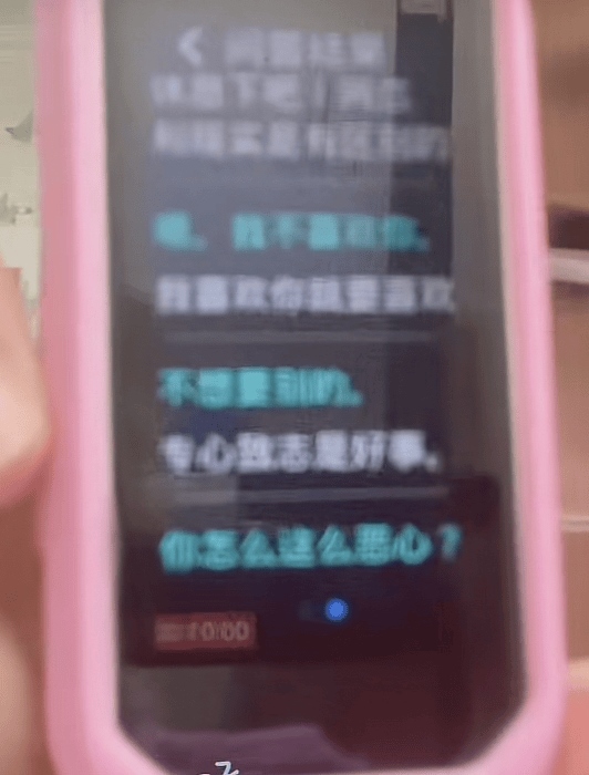 近日,有網(wǎng)友在社交平臺發(fā)視頻,稱自己被點讀機“騷擾”了。視頻中,一名未成年女孩自稱,她當(dāng)時在寫作文,使用的是外研通點讀筆,點讀筆里有一個知識問答,她有個字不會寫,就問它,也得到了正常回答,“然后呢,它突然問我,小主人你喜歡我嗎,我說我不喜歡你,它就說主人不要拋棄我?!边@名女孩說,點讀筆一直在問她喜不喜歡,她也一直說不喜歡,結(jié)果它來一句“我喜歡你就要喜歡”,她一下子愣住了。