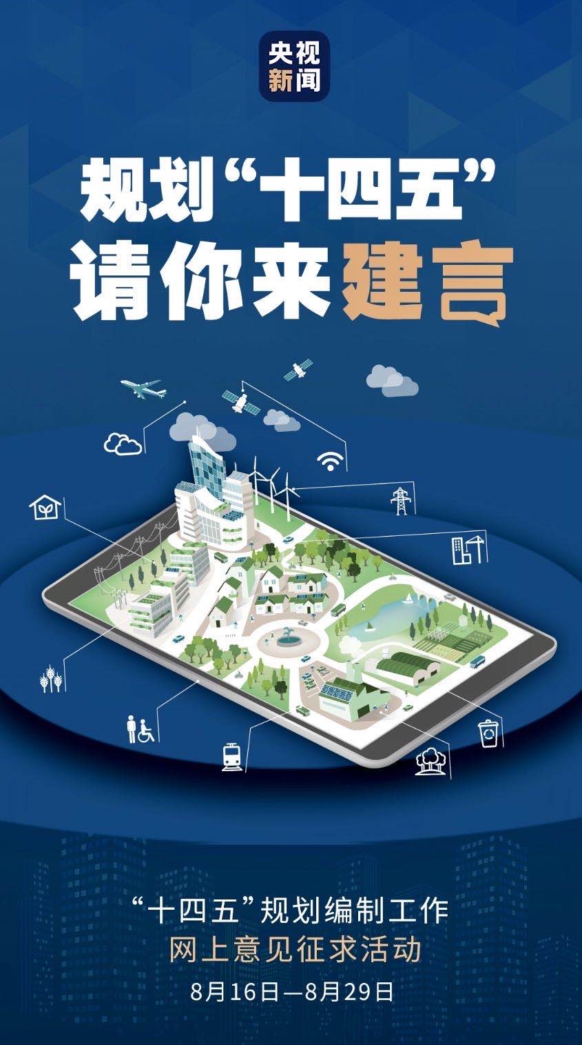 △“十四五”規(guī)劃編制工作網(wǎng)上意見征求活動正在進(jìn)行。這是央視新聞推出的征集頁面。